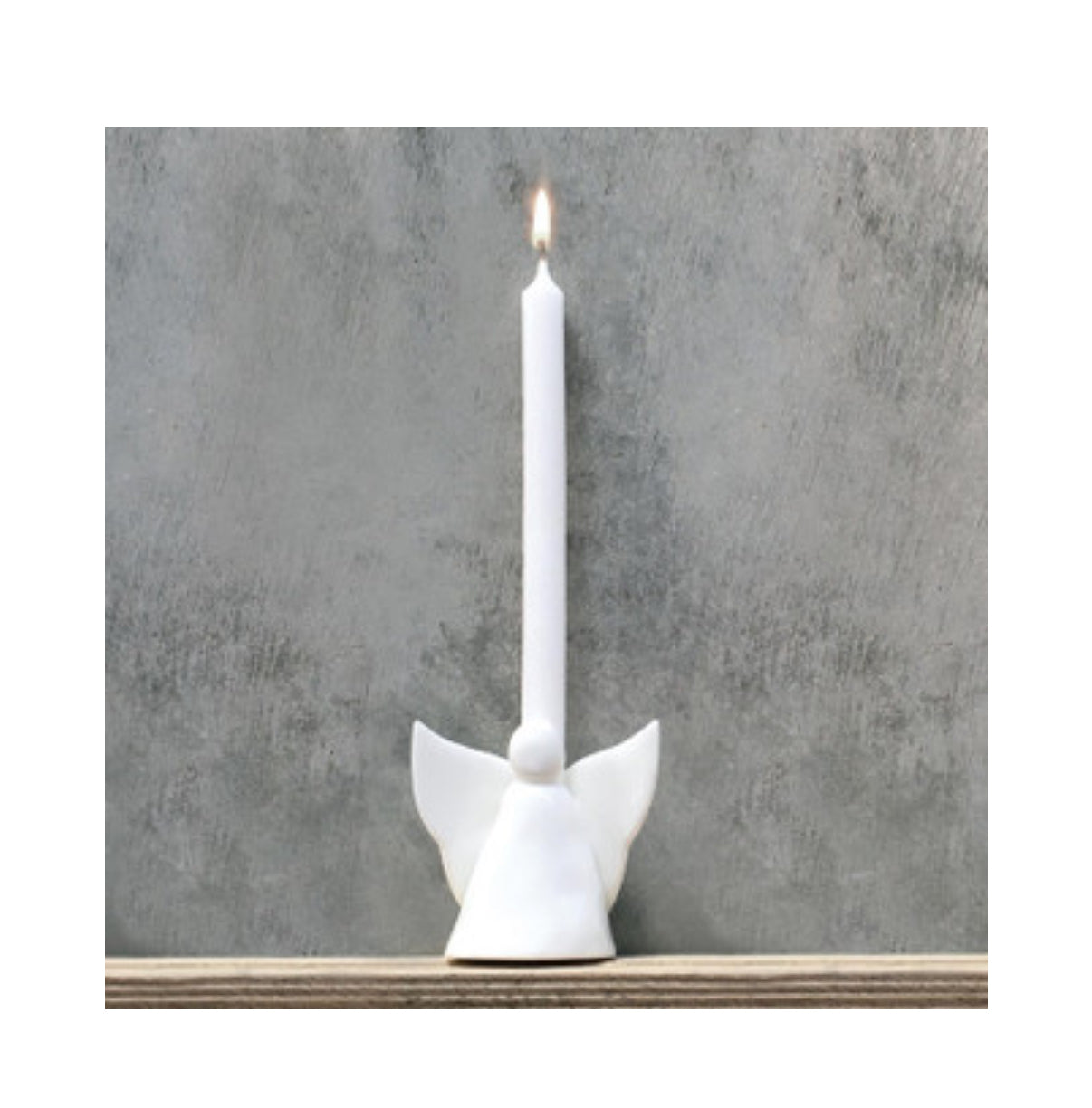 This porcelain angel bud vase and candle holder adds a touch of elegance to any room. Hand-sculpted by East of India, it features a .5" opening and measures 3.25" wide, 2" tall, and 2" deep. Perfect for the holiday season or a gift of sympathy, it comes in a beautiful Kraft gift box with an angel illustration and the word "Heavenly."