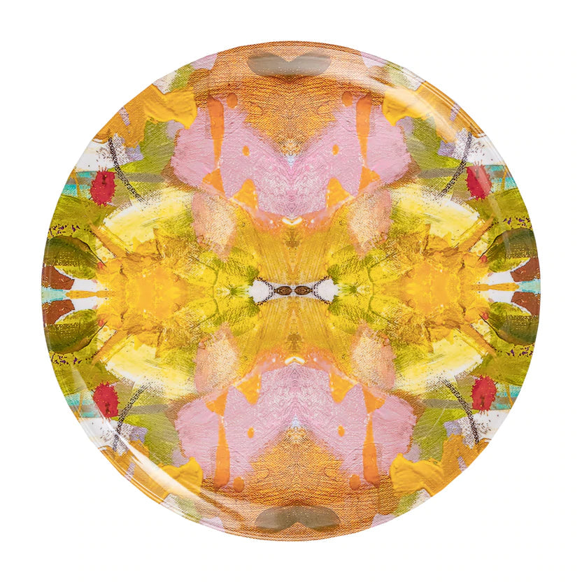 Enhance your tablescape with the vibrant Jardin Yellow Melamine Plate from Laura Park Designs. Crafted from durable, shatterproof melamine, this plate features a one-sided print with an abstract, multicolored design. Its glossy finish and lightweight construction make it perfect for everyday use both indoors and outdoors. Dishwasher-safe for easy cleaning, this plate measures 11" in diameter and weighs only 6 oz. Add a touch of color to your dining experience with this beautiful and functional plate.