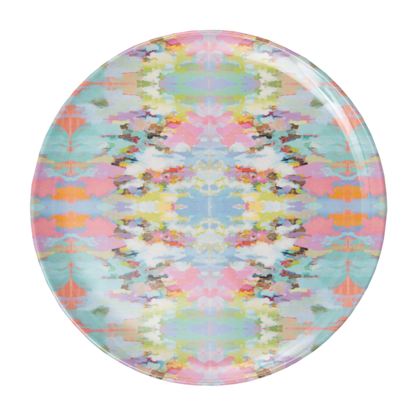 This BPA-free, melamine dinner plate adds a touch of color to your daily routine. Featuring the Laura Park logo, this durable and dishwasher-safe 11" plate is perfect for everyday use. The glossy, one-sided print and solid white bottom make it both stylish and practical.