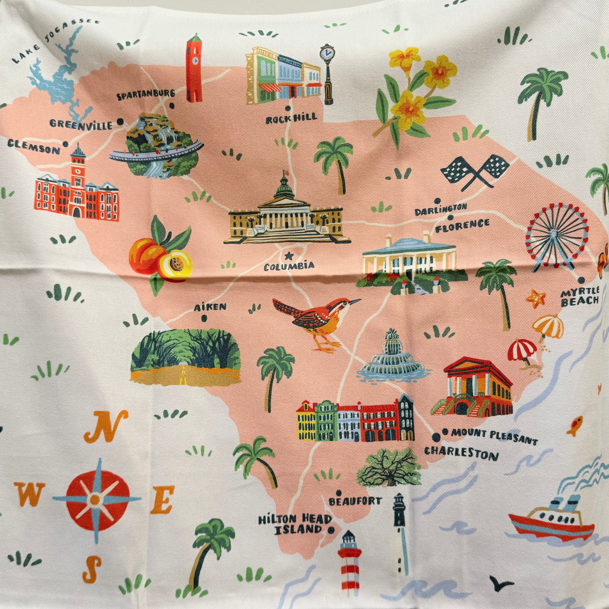 This South Carolina towel, featuring the vibrant artwork of Angela Staehling, is perfect for showcasing your love for the state or as a unique souvenir. Made from high-quality materials, it is soft, absorbent, and durable. Bring a touch of local charm to your home with this beautiful towel.